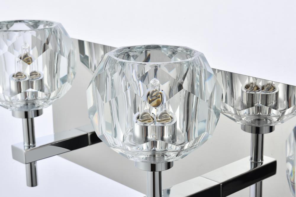 Hexagonal and pentagonal facets on the 4 inch crystal spheres tastefully diffuses the soft illumination from each arm