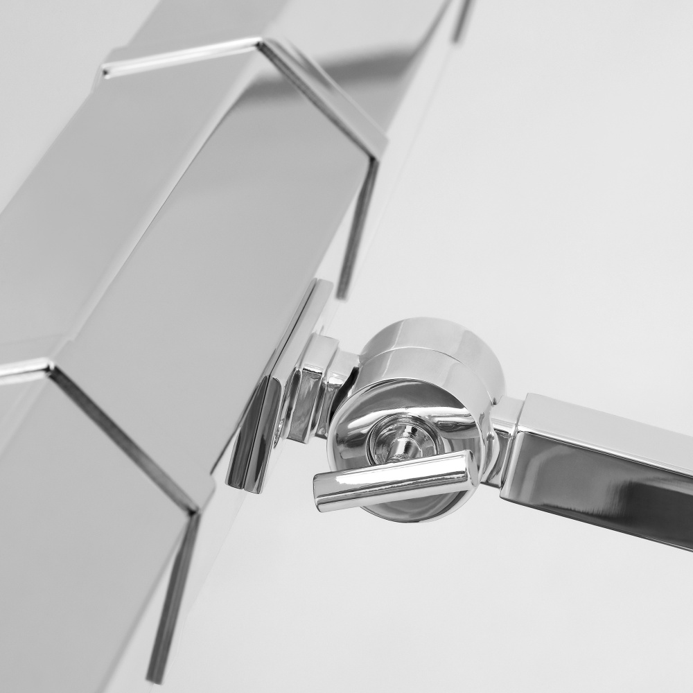 Sleek polished nickel steel shade pivots to provide light where desired