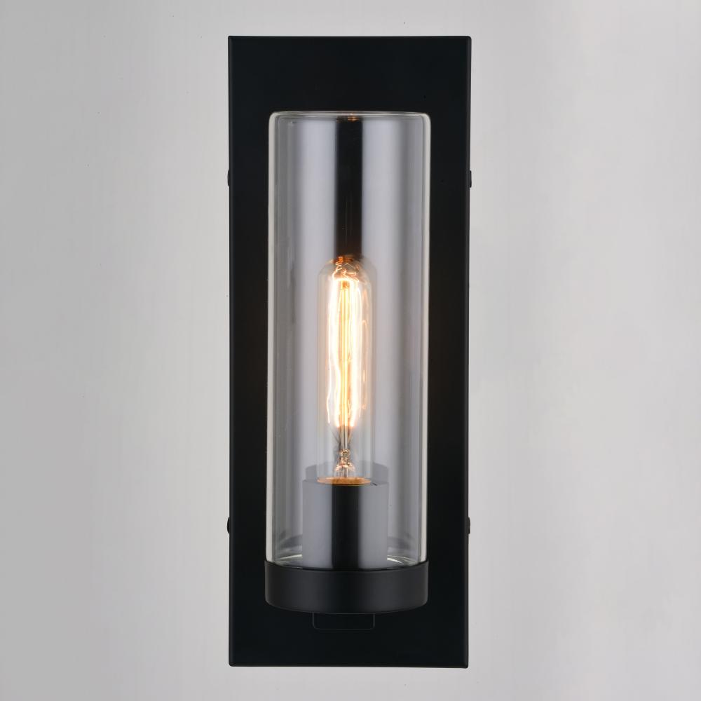The Grantley collection is the perfect addition to your outdoor or indoor spaces. A long clear glass cylinder accentuates the clean, contemporary look of this collection. A metal disc in a striking matte black finish supports the glass cylinder showcasing a generous display of light. Add this wall mount light to any entryway, garage, hallway, or bath for that stylish touch.