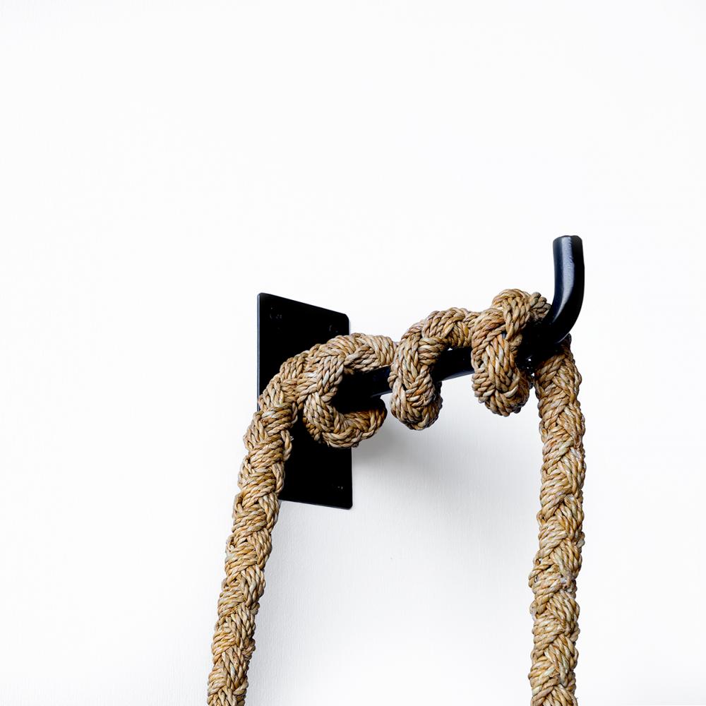 Jeffrey Alan Marks Collection. Pendant intricately woven with a core rattan frame and natural rope. Black metal wall mount included. Plug-in pendant with average cord length of 22 feet.