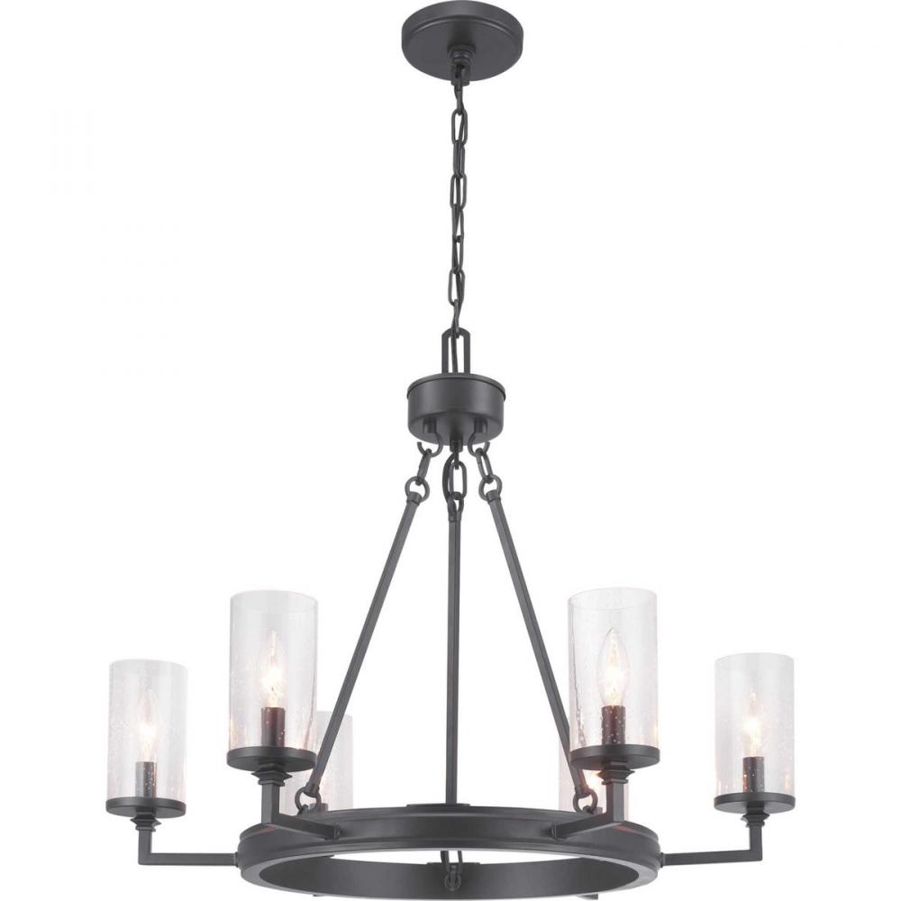 Graphite finishes and organic seeded-glass shades form the basis of this collection that channels traditional iron structures;This round six-light chandelier is ideal for a small-to-medium dining room or breakfast nook;This fixture feels most at home in a