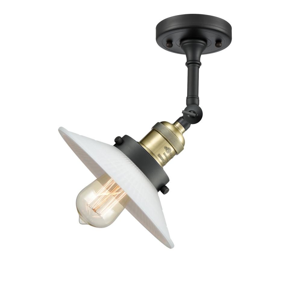 Halophane - 1 Light - 9 inch - Black Antique Brass - Matte White Halophane Shade - Adjustable Semi-Flush Mount