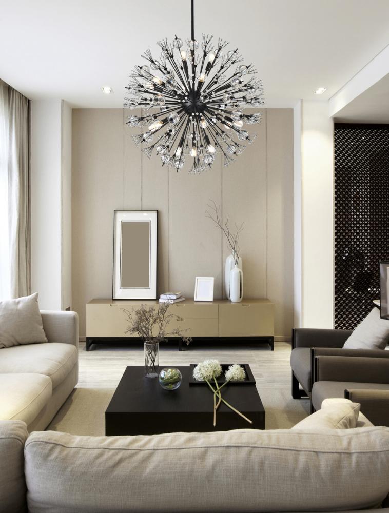 Features a striking sputnik-style shape with sparkling crystal accents for a luxurious modern touch.