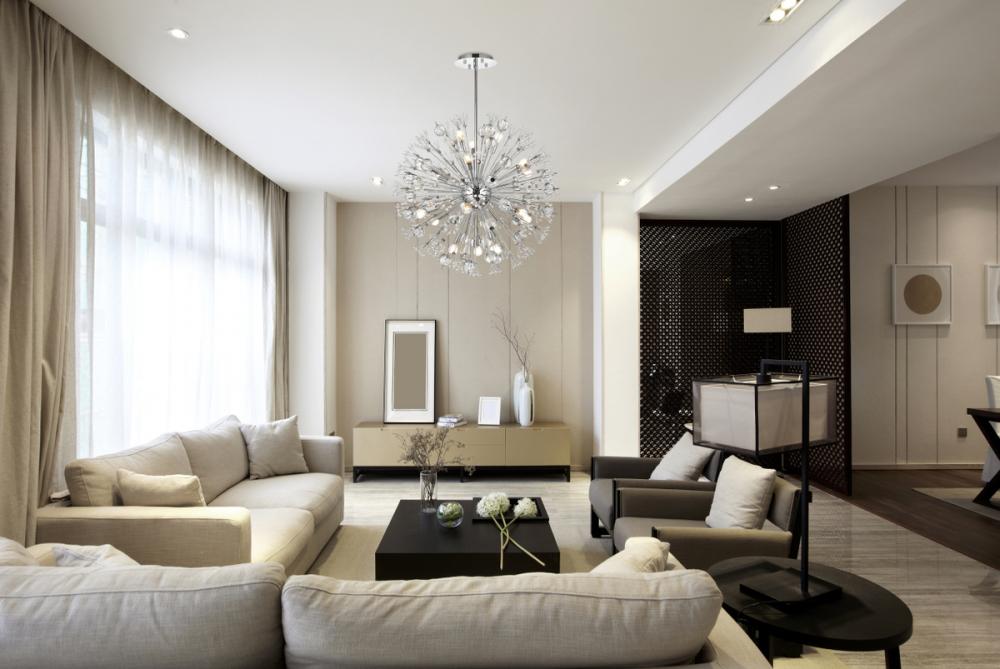 Features a striking sputnik-style shape with sparkling crystal accents for a luxurious modern touch.