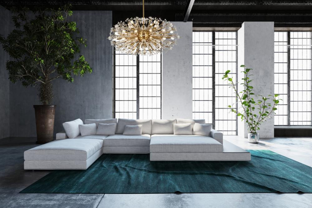 Features a striking sputnik-style shape with sparkling crystal accents for a luxurious modern touch.