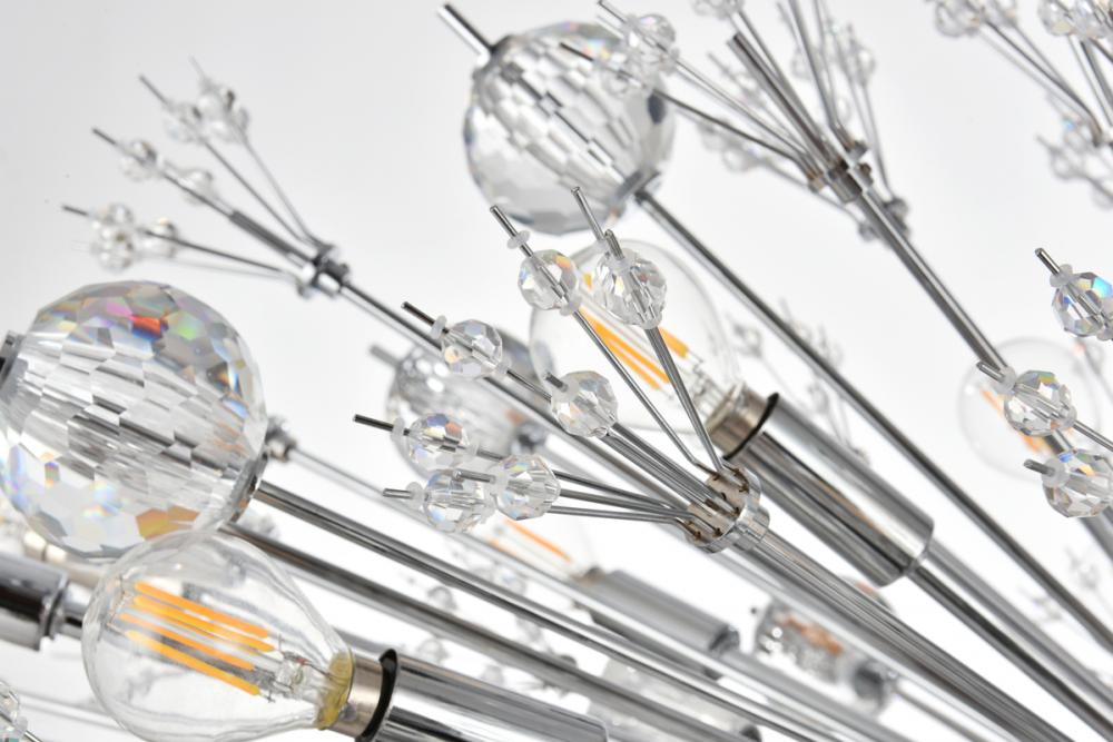 Features a striking sputnik-style shape with sparkling crystal accents for a luxurious modern touch.