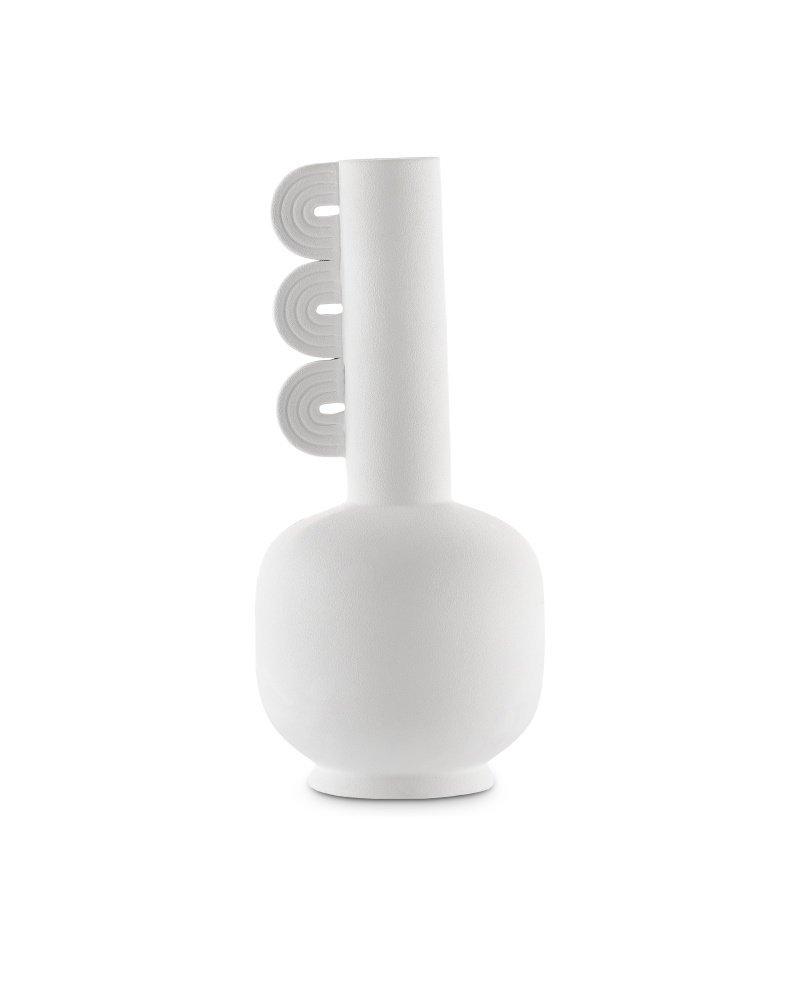 Proving our artisanal prowess with materials is our Happy 40 collection, which includes our Happy 40 Three Wings White Vase. Each of the ceramic bodies of the seven vases in this family, inspired by the "Art Decoratif" period, are hand thrown. with the designs that have handles, they require great skill to adjust to the sides of each vase symmetrically. The necks of these decorative vases are straight, which means they do not have a circular edge at the mouth to reinforce them during baking; and the texture is hard to obtain, which means they have to be fired at a special temperature.