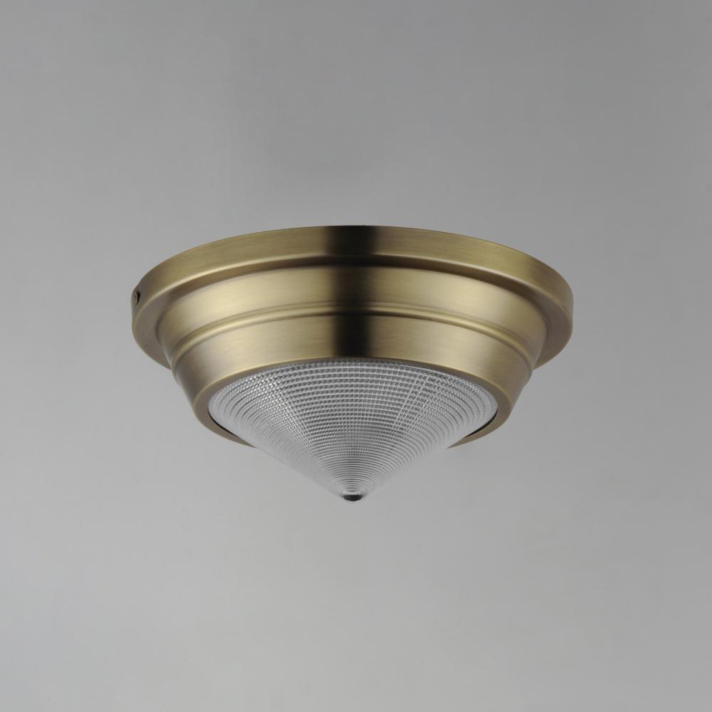 A prismatic diffusion of light is housed within pressed cone glass shades. Choose from pendants with tapered metal halves that conceal the light source or glass shades that are supported by a metal ring. Coordinating bath vanity lights complete the collect