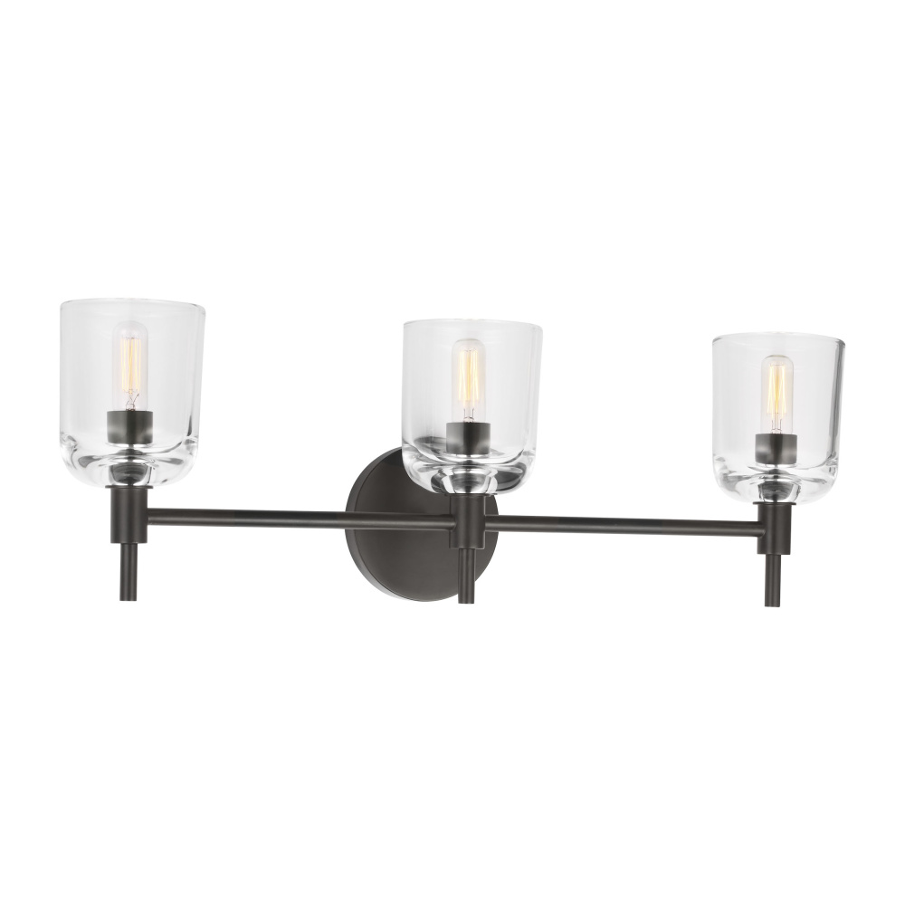 Crafted with Steel in a Aged Iron finish with clear glass shades