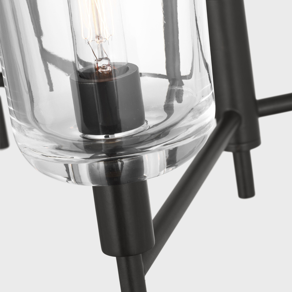 Crafted with Steel in a Aged Iron finish with clear glass shades