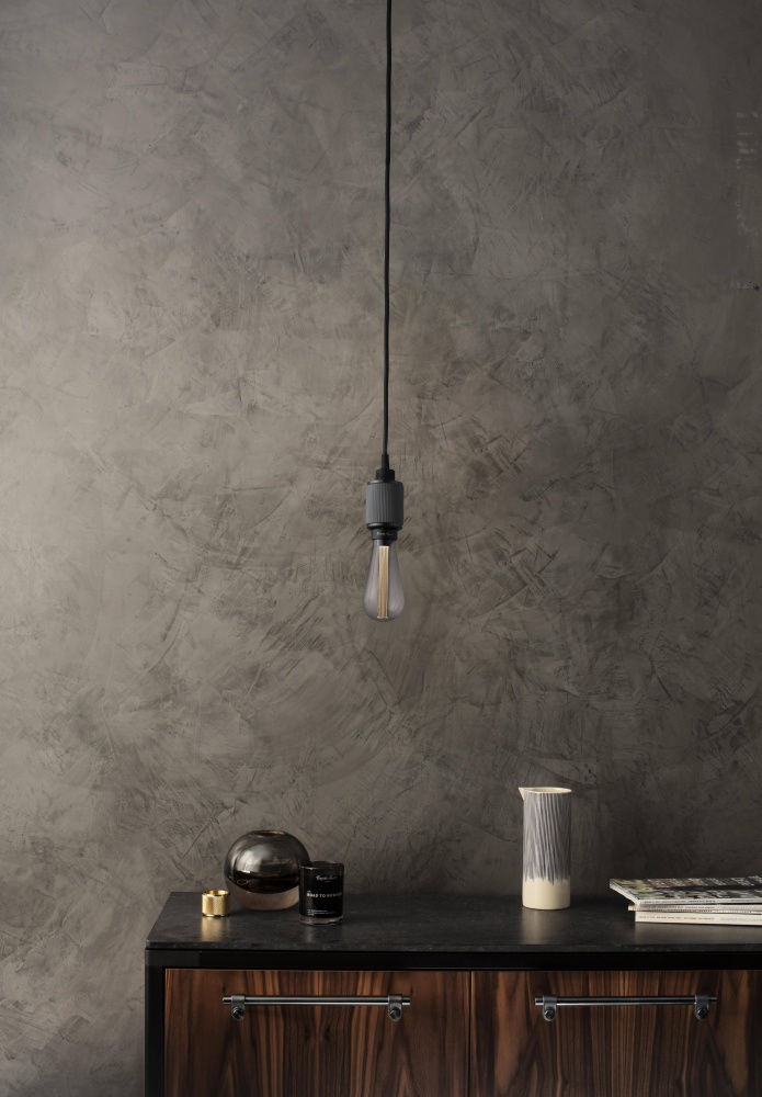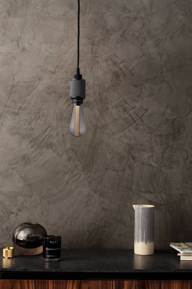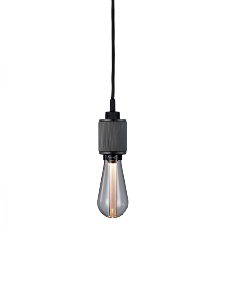 "A light pendant made from solid gun metal and featuring our signature, diamond-cut, linear-knurl pattern. This light has an E26 bulb socket and comes with matt black rubber cord and a matt black ceiling rose. The light looks best when teamed up with one of our LED BUSTER BULBS."