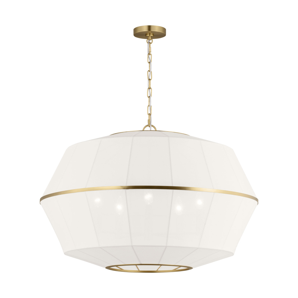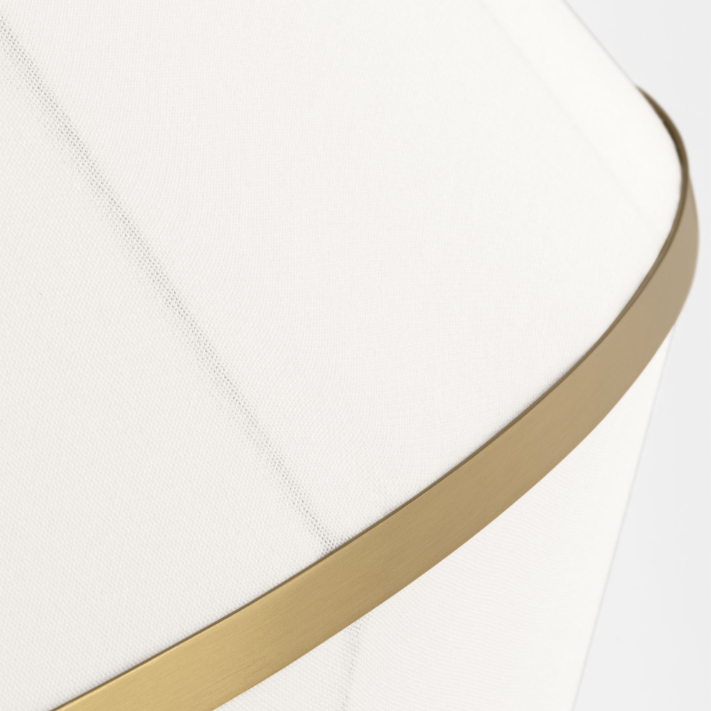 Crafted with Steel in a Burnished Brass finish with white linen shades