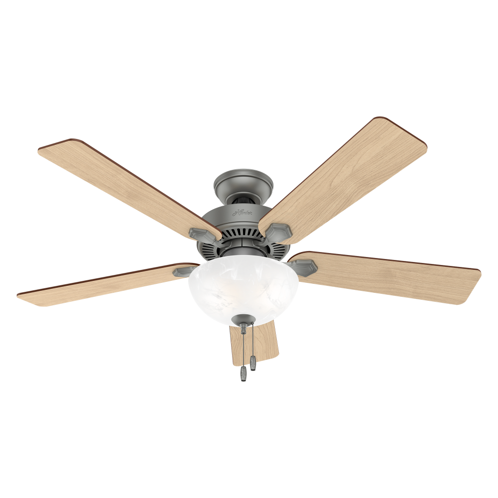 The 52-inch Swanson ceiling fan features easy-to-use pull chains and energy efficient LED light.You can install this Hunter fan to every room in your home knowing it’s wobble free, whisper quiet, and long lasting. As a part of the Professional Series, the Swanson Collection is available in a variety of sizes, finishes, and light kit combinations.