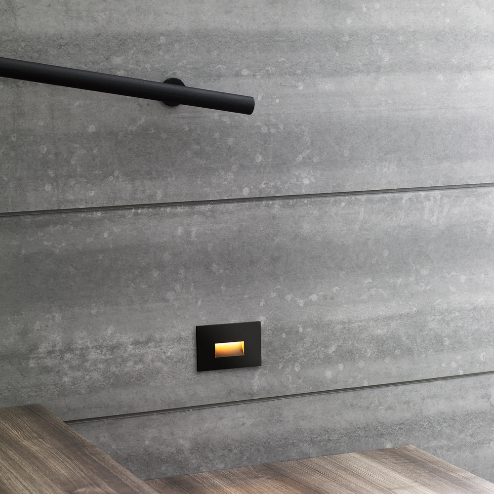 Ikon by Sean Lavin is an outdoor step light featuring a contemporary design with a minimized rectangular aperture that aims illumination downward to light stairs with minimal glare. Ideal for wayfinding and added safety after dark. The Ikon exterior step light features selectable CCTs (2700K or 3000K) and can be installed as a 120V fixture or as a low-voltage 12V fixture (remote low-voltage transformer required). The Ikon LED fixture is wet listed IP66 which makes it ideal for commercial applications as well as for residential use. Available in modern finish options.