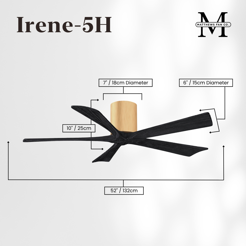 Irene-5H - 52" Five Blade Flush Mount Paddle Fan - Light Maple Tone Finish - Matte Black Blades