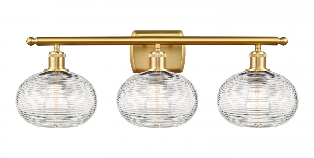 Ithaca - 3 Light - 28 inch - Satin Gold - Clear Ithaca Shade - Bath Vanity Light