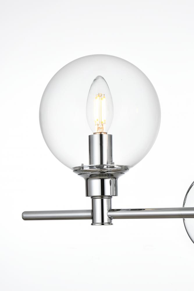 This armed sconce features a streamlined and minimalistic design that complements any space in your home. Shown with the clear glass shades, this wall sconce is versatile and can be placed in a bathroom,entry way, or hallway. Compatible with dimmers, so you'll have the right amount of light in any given time of the day. The hardwired fixture is safe to use in damp locations. Made from iron with a modern finish, it includes a round backplate and a matching arm that holds in place two 40W bulb ( sold separately). Available in multiple finishes. Can be installed as an uplight or a downlight.