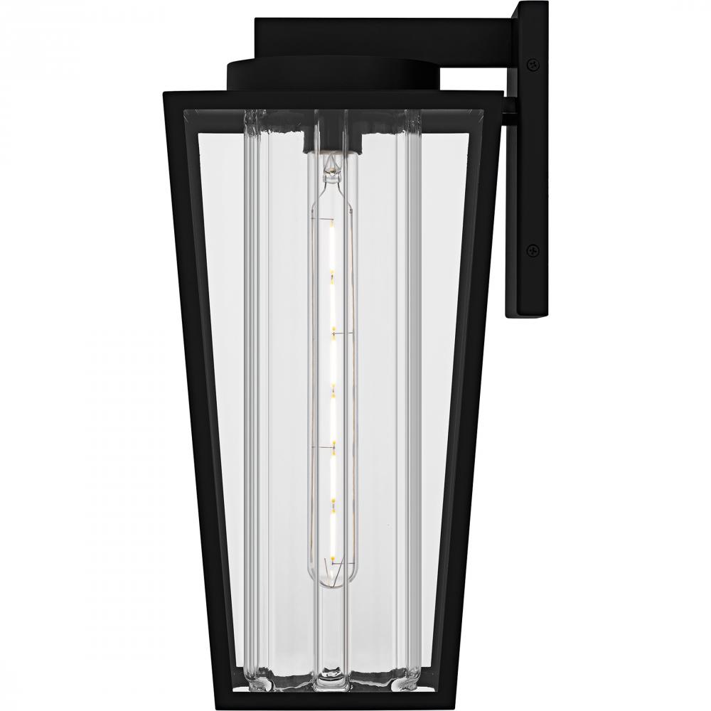 The Jett outdoor lantern collection incorporates transitional style with classic elements, making it a versatile choice for a variety of exteriors. The stately silhouette features clean lines and a unique center glass column, all finished in a classic mat