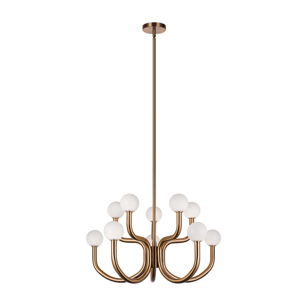 With flowing arms featuring round Opal glass, the Joelle incorporates a mix of style and elegance that could enhance the visual impact. Finishes include chandeliers and wall sconces in Aged Gold Brass and Matte Black.