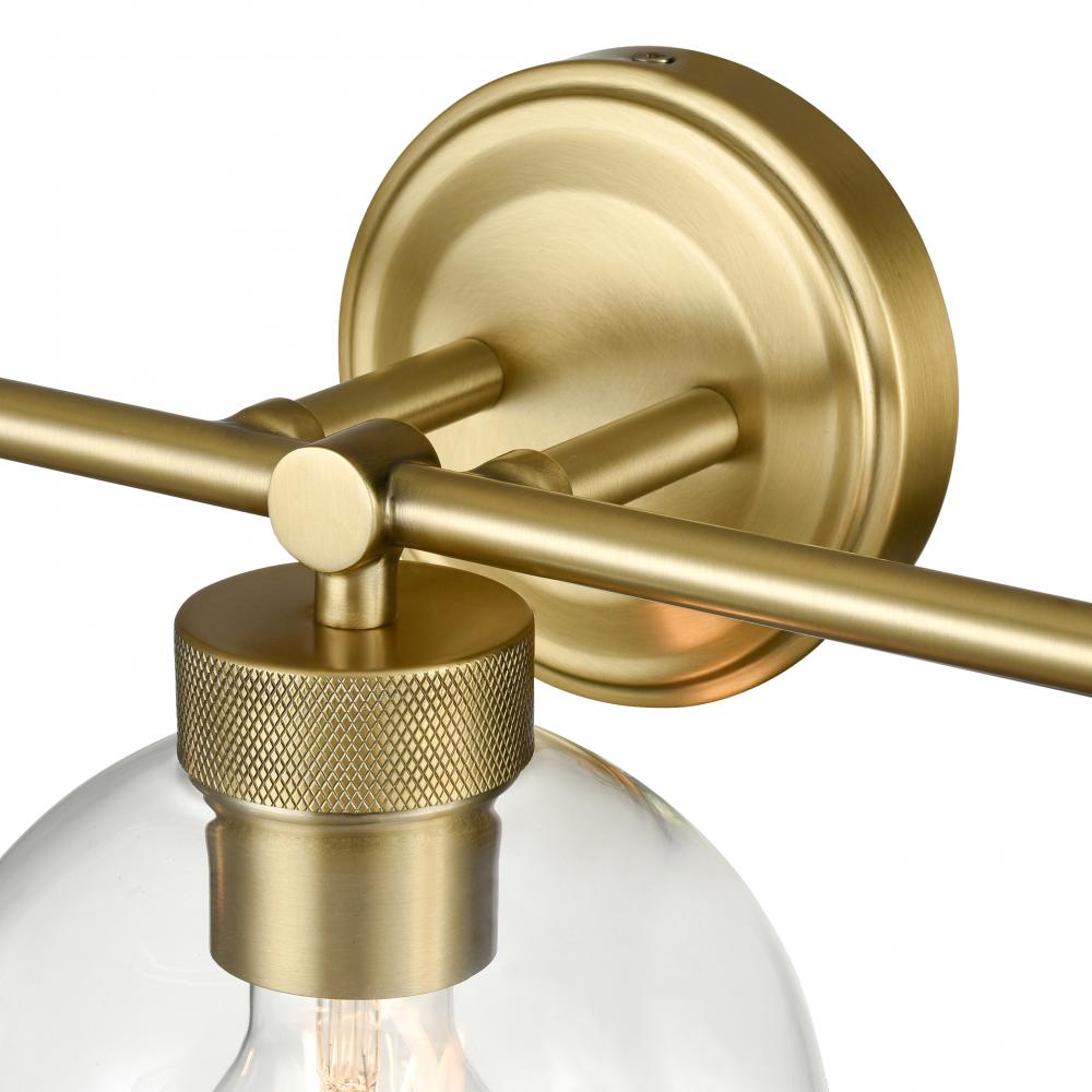 The Jonatan Family of vanity lighting seamlessly fuses modern and industrial design for optimum effect. The sleek fixtures, with hinged-style embellishments, are finished in either matte black or vintage brass. The clear glass globes complete the timeless aesthetic and provide the perfect amount of over-the-vanity lighting, available in 1-, 2-, 3-, and 4-light options.