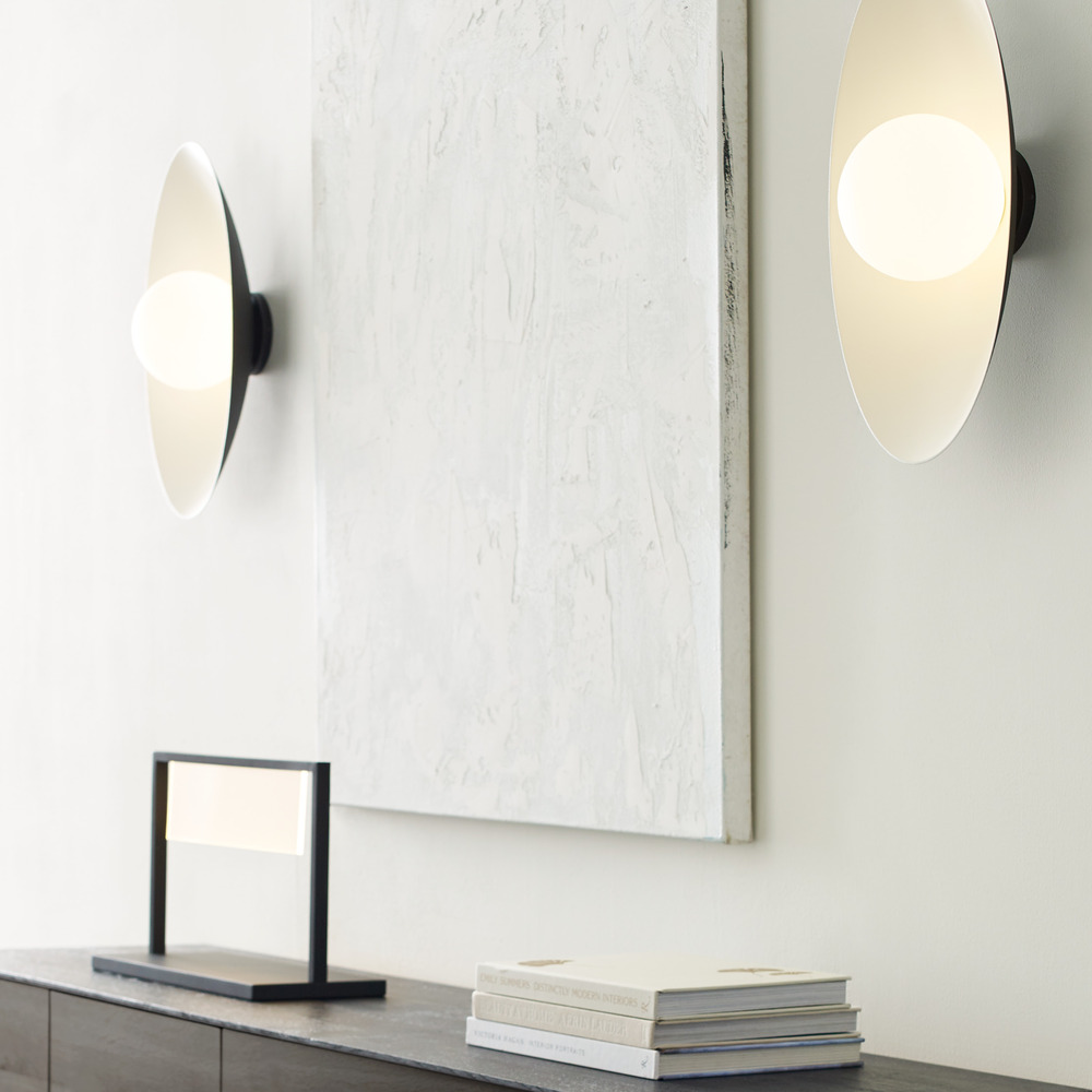 Joni 16 by Sean Lavin features a glowing integrated LED that sits against the backdrop of a simple elliptical reflector. Designed with a contemporary aesthetic, Joni 16 has heightened visual interest with two-tone finishes designed for both indoor and outdoor applications. Available in modern finishes. Complete the look with the extended Joni Family by coordinating with the Flush Mount and Pendants. Lamping options are compatible with most dimmers. Refer to the Dimming Chart for more information.
