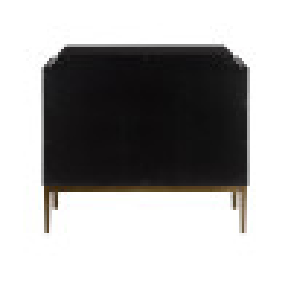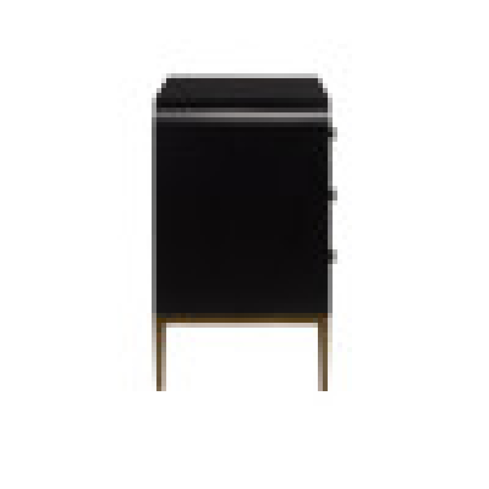 The Kallista Blue Chest has a dark sapphire blue finish that enlivens the sycamore veneers on its door fronts. The wood grains bring the navy blue chest a hint of distressing that contrasts the sleek lines of the base and the door pulls in an antique brass finish. The exterior is finished in a glossy caviar black. Design details on this chest include soft-close door hinges, and adjustable shelves and glides.