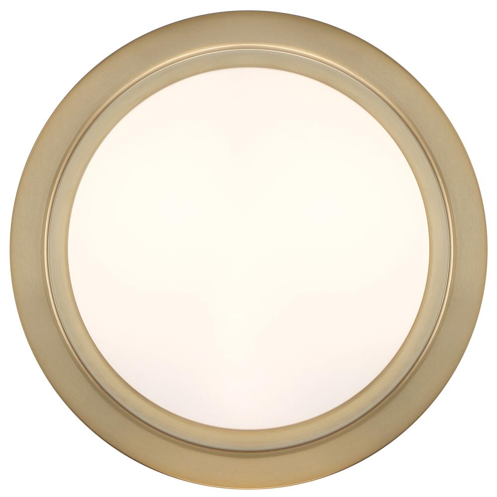 The contemporary Kendal collection makes a statement with its graphic uniform pattern. Its metal frame surrounds white glass in this elegant drum-shaped ceiling mount. The high contrast of Vibrant Gold, Black Forged, or Polished Nickel against white glass is a great way to add a touch of drama to a room.