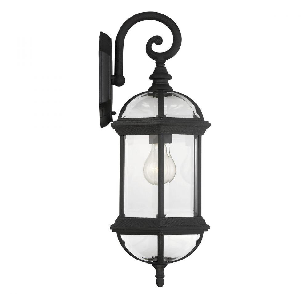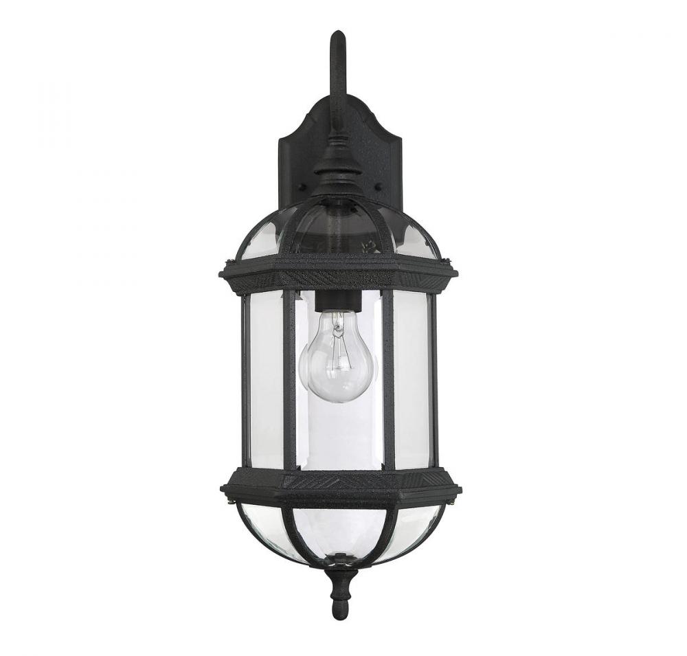 Classic exterior fixture available in two finishes - Textured black and Rustic bronze with Clear Beveled glass.