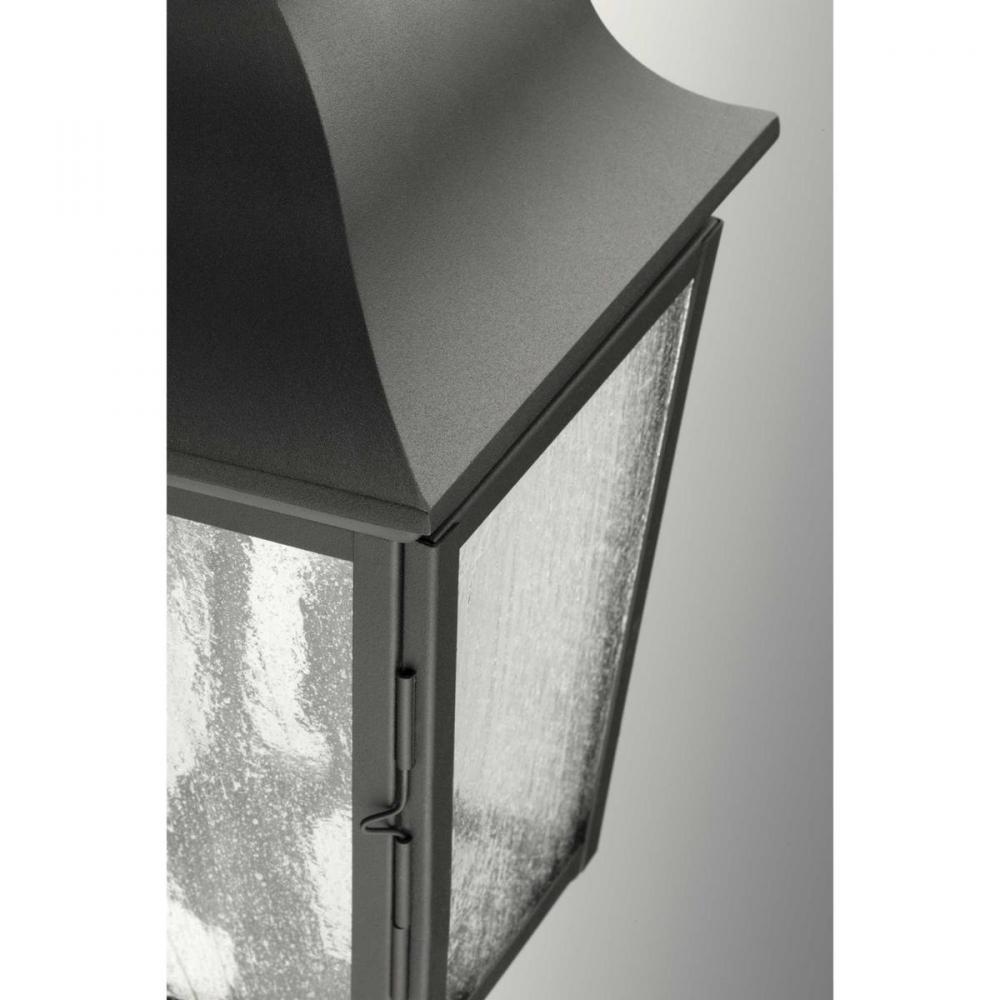Black finish.;Updated classic style.;Seeded glass panels with traditional detailing.;Easy access for relamping.
