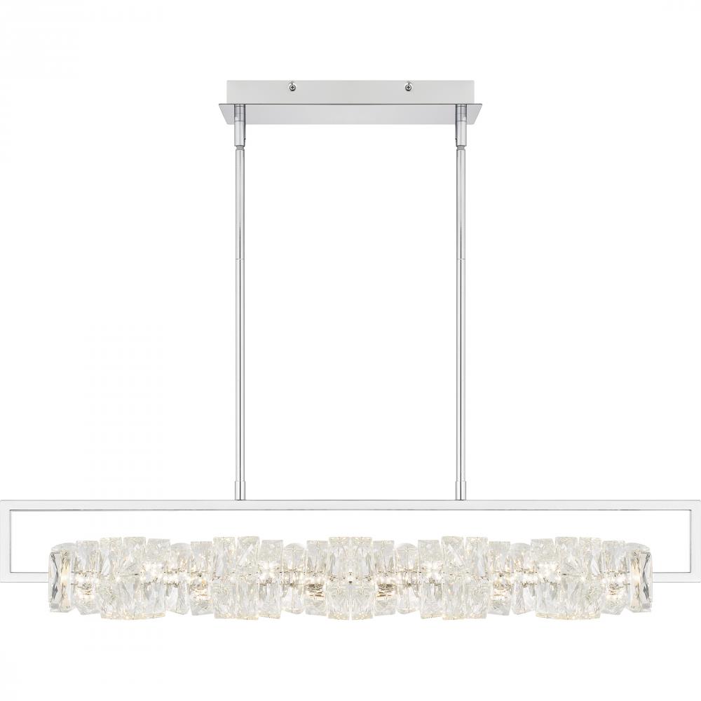 Polished chrome and sparkling crystal glass make an elegant pairing in Klass. An integrated LED light source is included, enhancing the glittering effect of the clear crystal glass. Part of the popular Platinum by Quoizel collection, the Klass linear chand