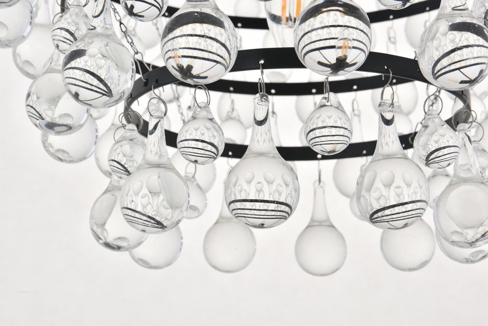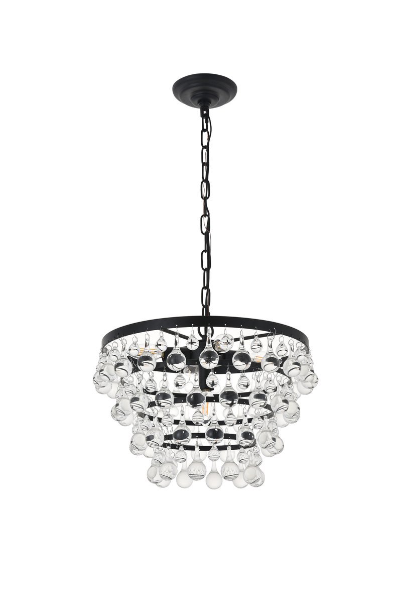A combination of refined and playful brings us the Kora collection pendant lamp in a black finish. The tiered frame say sophistication, but the multitude of clear crystal droplets indicate a whimsical personality. The ritzy style is perfect for any home--whether it lights up your home bar or your living room, you can't go wrong.