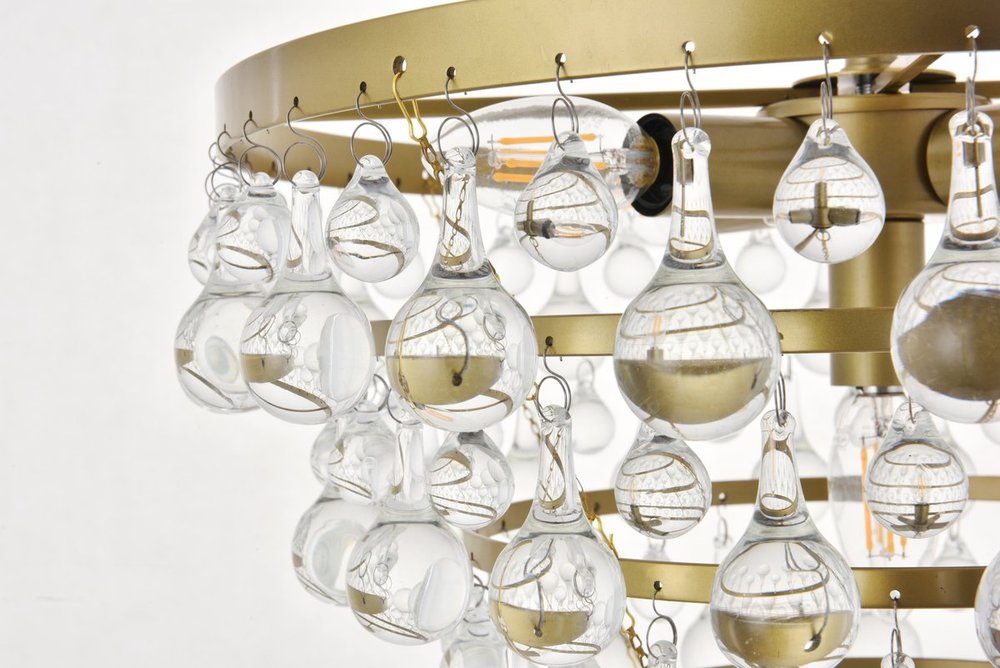 A combination of refined and playful brings us the Kora collection pendant lamp in a brass finish. The tiered frame say sophistication, but the multitude of clear crystal droplets indicate a whimsical personality. The ritzy style is perfect for any home--whether it lights up your home bar or your living room, you can't go wrong.