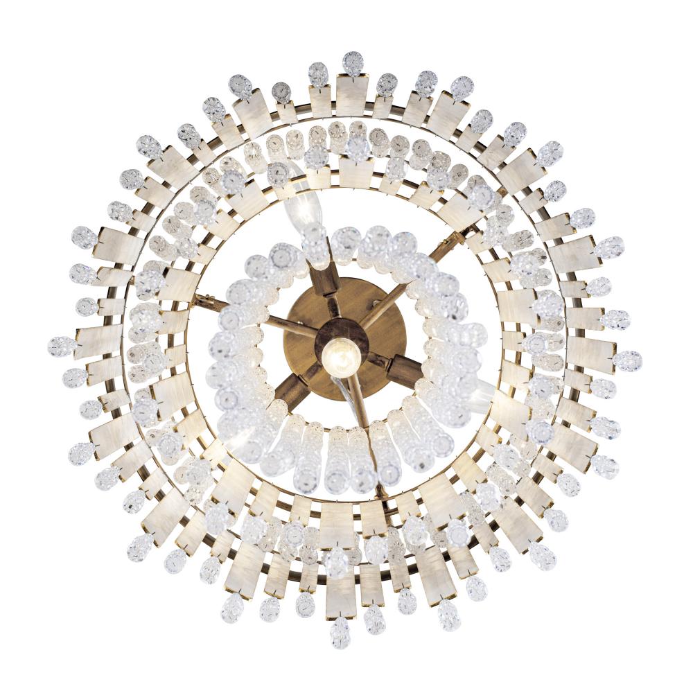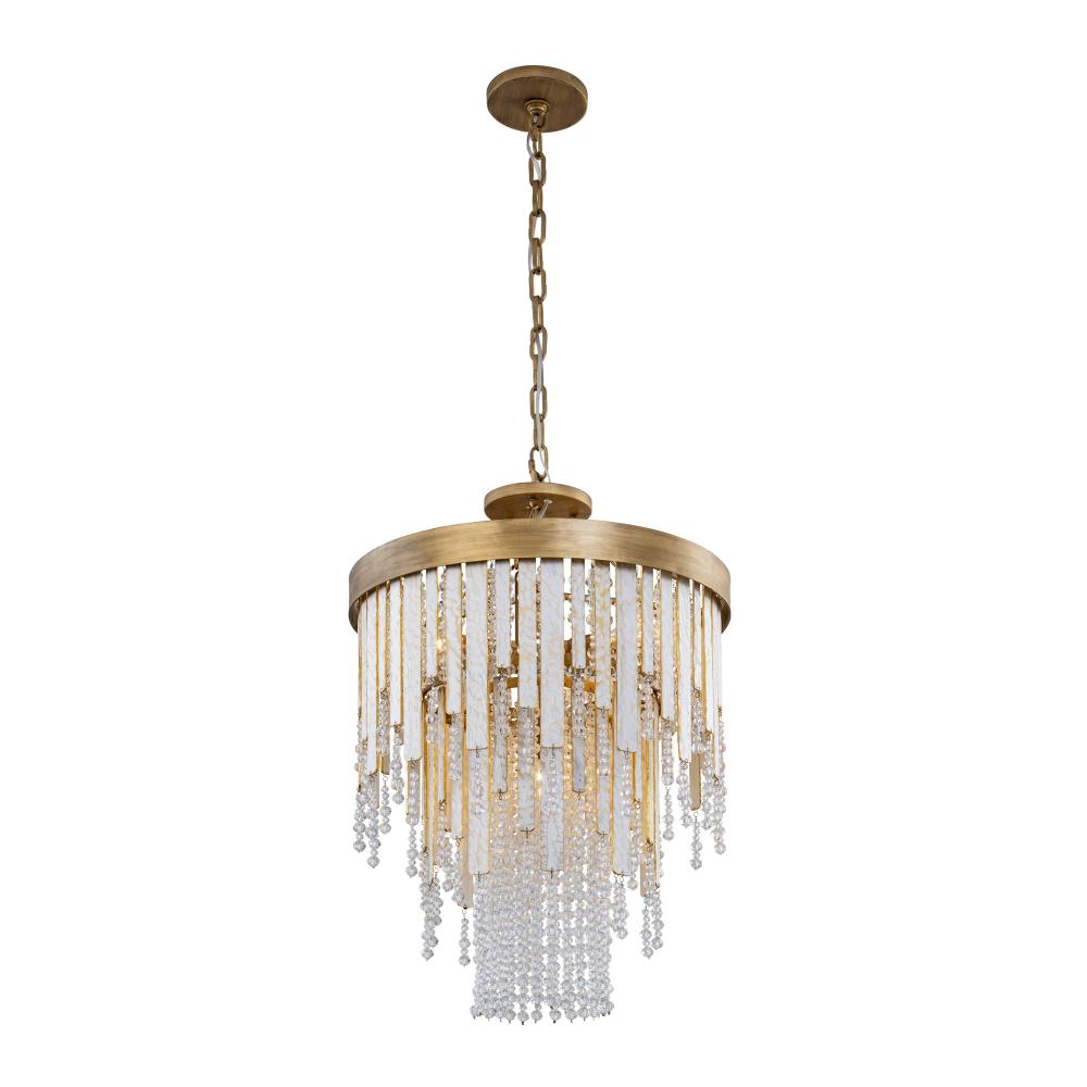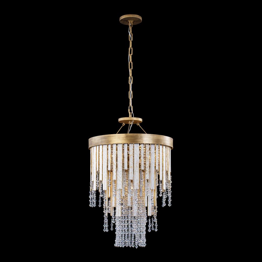 Ignite the swank and sultry soul of New Orleans. From feelings of a warm breeze blowing over a porch with gauzy drapes, to the decadence and passion of a smoky jazz club, Lafayette is sure to set the mood in any room. Echoing the look of live oaks with Spanish moss on dewy mornings, crystal beads sparkle around the hand-carved, white-and-gold washed reclaimed wood strips.