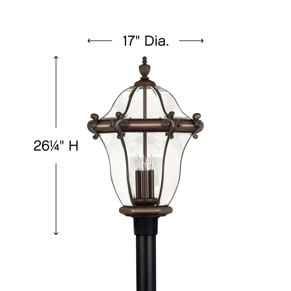 San Clemente’s elegant shape takes center stage with clear bent, beveled and bound glass as the central design element. Its cast aluminum and brass construction complemented by exquisite cast ornamental detailing completes its captivating appeal.