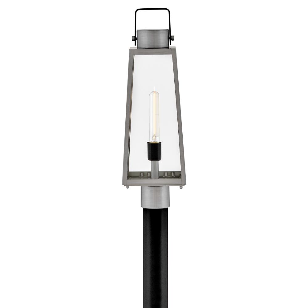Hype up your alfresco area with the Hugh outdoor lantern and its sleek transitional style. The trapezoidal design features bold, over-scaled clear glass panes framed by carefully curated two-tone metal finish options to inject a modern edge. Choose from classic Antique Brushed Aluminum with a matte Black accent or a rich Black with a warm Burnished Bronze accent. Pro tip: we recommend a tubular vintage filament bulb to make Hugh pop on porches and patios or amp up any exterior space.