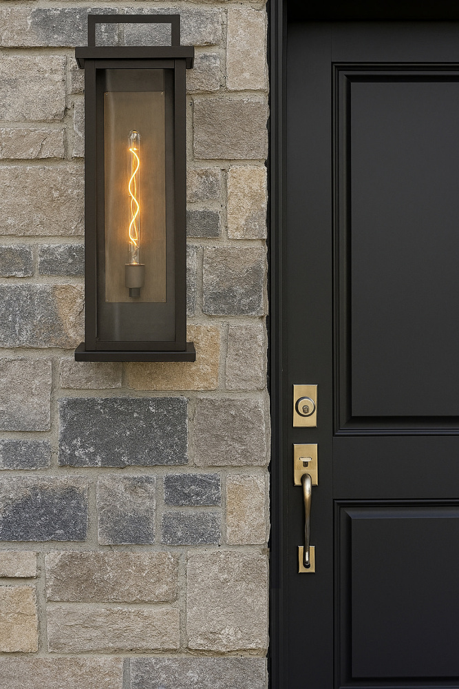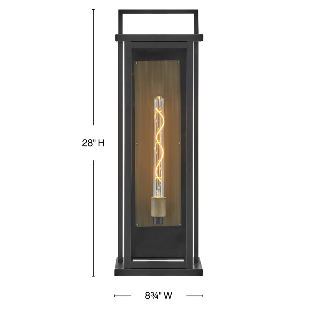 Sleek but stately, Langston demands attention with its bold silhouette in Black with a gleaming Burnished Bronze reflector. Available as an over-scaled option, Langston delivers a stunning light beam spread thanks to its extra-large panes of clear glass.