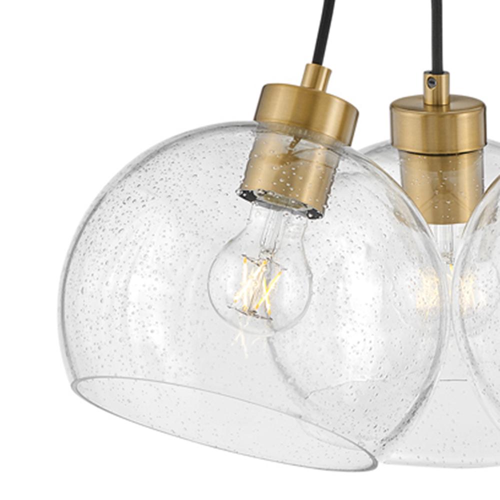 Your room will get rave reviews thanks to Rumi. This modern, art-forward fixture captivates with the chic fusion of clear seedy glass globes and a flawless Lacquered Brass finish. Design opportunities abound, with Rumi adding thrill to airy and cozy spaces alike.