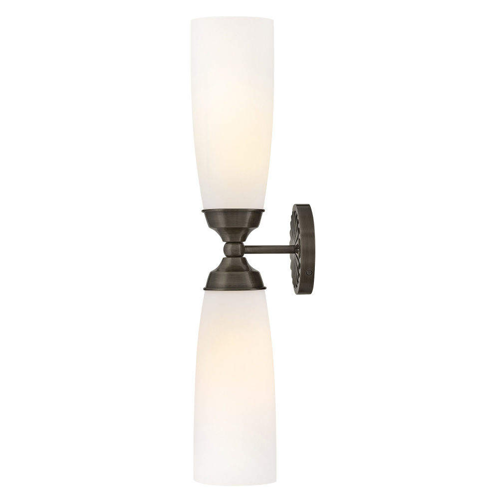 Blending the glamour of art deco design with midcentury style, Alexis showcases refined details elegantly contrasted by elongated, Etched Opal glass shades. A medallion backplate features a sunburst motif enhanced by hand-polished finishes and burnished detailing to create a rich, dimensional look that elevates any space
