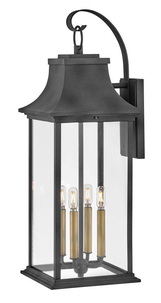 Inspired by the early American coach lights popular throughout New England, Adair features a clean and stately form composed of hardy aluminum. An Aged Zinc finish accented by the Heritage Brass candle sleeves is complemented with robust construction details.
