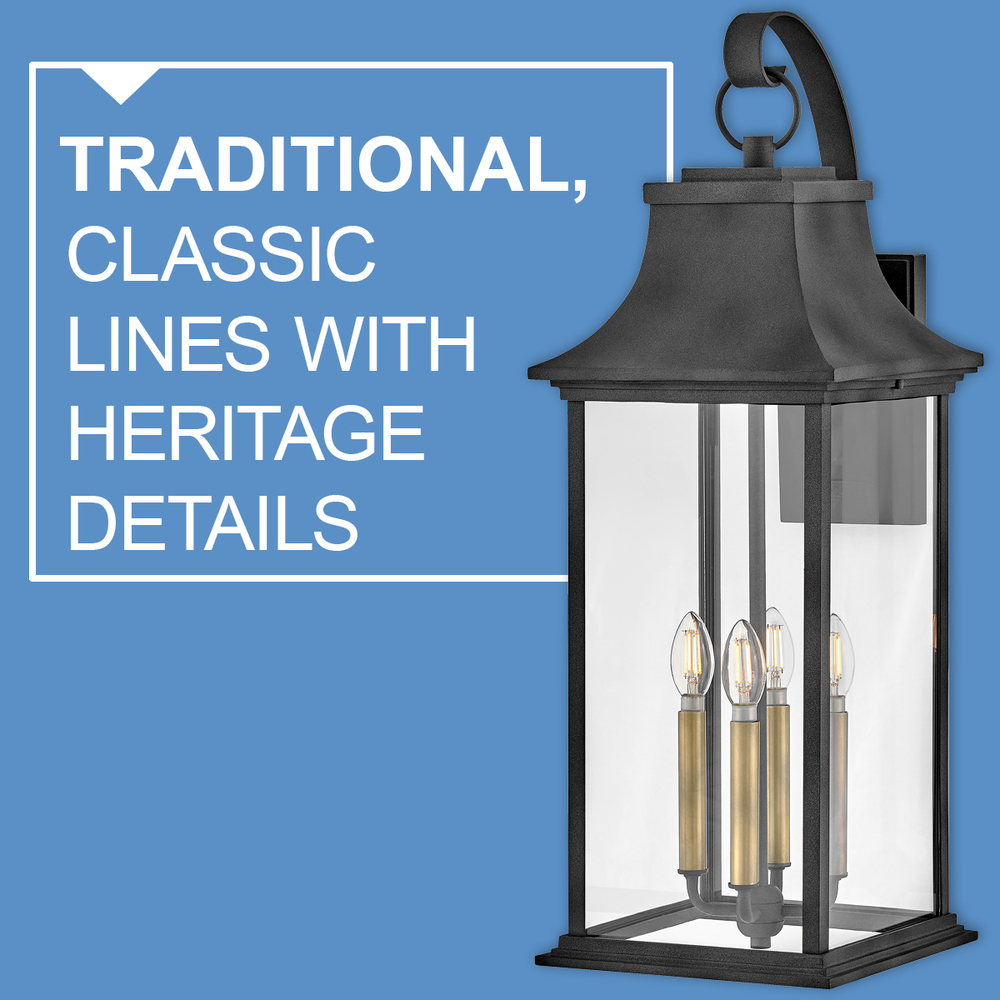 Inspired by the early American coach lights popular throughout New England, Adair features a clean and stately form composed of hardy aluminum. An Aged Zinc finish accented by either Heritage Brass or Antique Nickel candle sleeves is complemented with robust construction details.