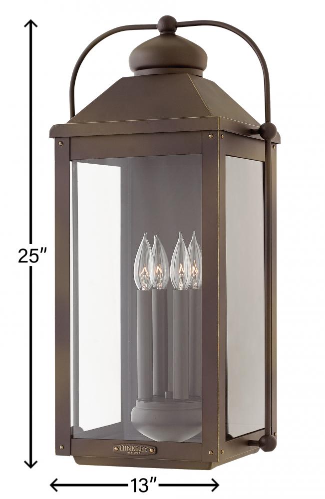 Anchorage is an early American lantern design crafted of solid aluminum to reflect a bold yet refined silhouette. The Aged Zinc or Light Oiled Bronze finish and clear glass complement the long clean lines, elegant arched carriage handle and sturdy knobs, resulting in a vintage style with classic charisma.