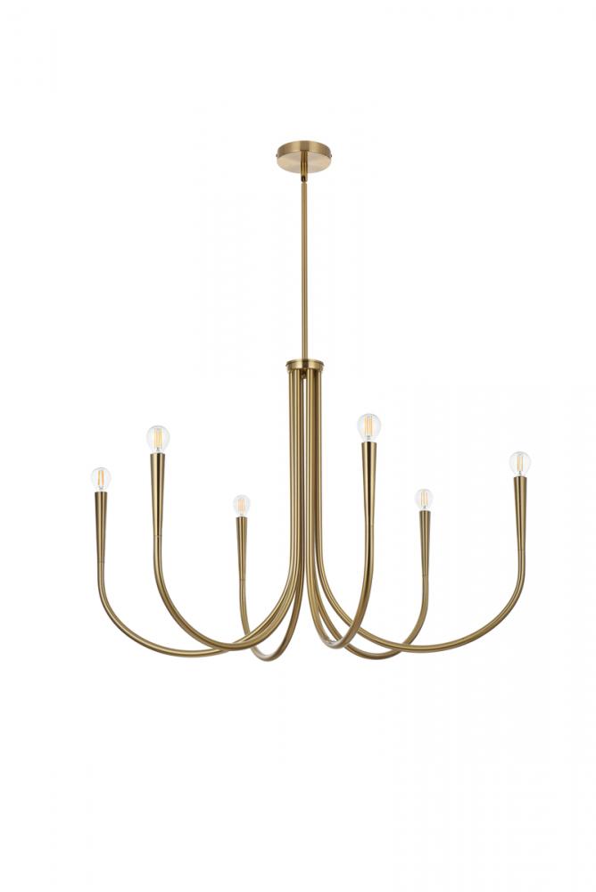 Equipped with six arms, this chandelier provides generous illumination to brighten up any space. Each conical end ensures a focused and balanced distribution of light, creating a warm and inviting atmosphere. The smooth and curved design of the tubular arms creates a gentle, inviting glow that bathes your room in a soft, diffused light. Enjoy a welcoming ambiance that beckons you to unwind and relax. The arms of this chandelier ingeniously stack vertically, forming a stunning display of tubes that adds depth and dimension to the overall design. This unique arrangement sets it apart from traditional chandeliers, making it a true conversation starter. Sloped ceiling adaptable with a durable swivel could be mounted on vaulted or angled ceilings.