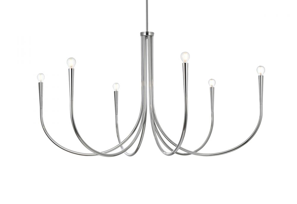 Equipped with six arms, this chandelier provides generous illumination to brighten up any space. Each conical end ensures a focused and balanced distribution of light, creating a warm and inviting atmosphere. The smooth and curved design of the tubular arms creates a gentle, inviting glow that bathes your room in a soft, diffused light. Enjoy a welcoming ambiance that beckons you to unwind and relax. The arms of this chandelier ingeniously stack vertically, forming a stunning display of tubes that adds depth and dimension to the overall design. This unique arrangement sets it apart from traditional chandeliers, making it a true conversation starter. Sloped ceiling adaptable with a durable swivel could be mounted on vaulted or angled ceilings.