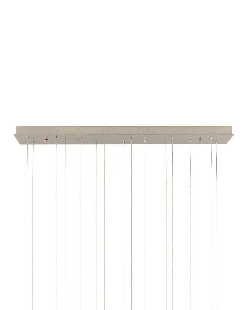 The Lazio Rectangular 15-Light Multi-Drop Pendant has luminous shades carved from natural alabaster. The veining in the material makes each shade unique because each stone taken from the earth will have its own personality. The canopy of this piece is luminous in a painted silver finish. This fixture is among Currey & Company's multi-drop pendant collection, which includes multiple configurations.