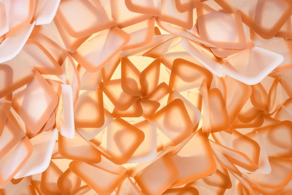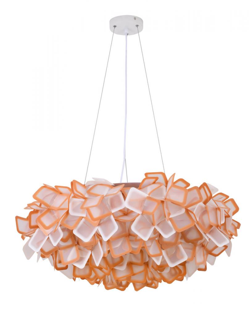 This unique LED chandelier has a orange and white acrylic frame