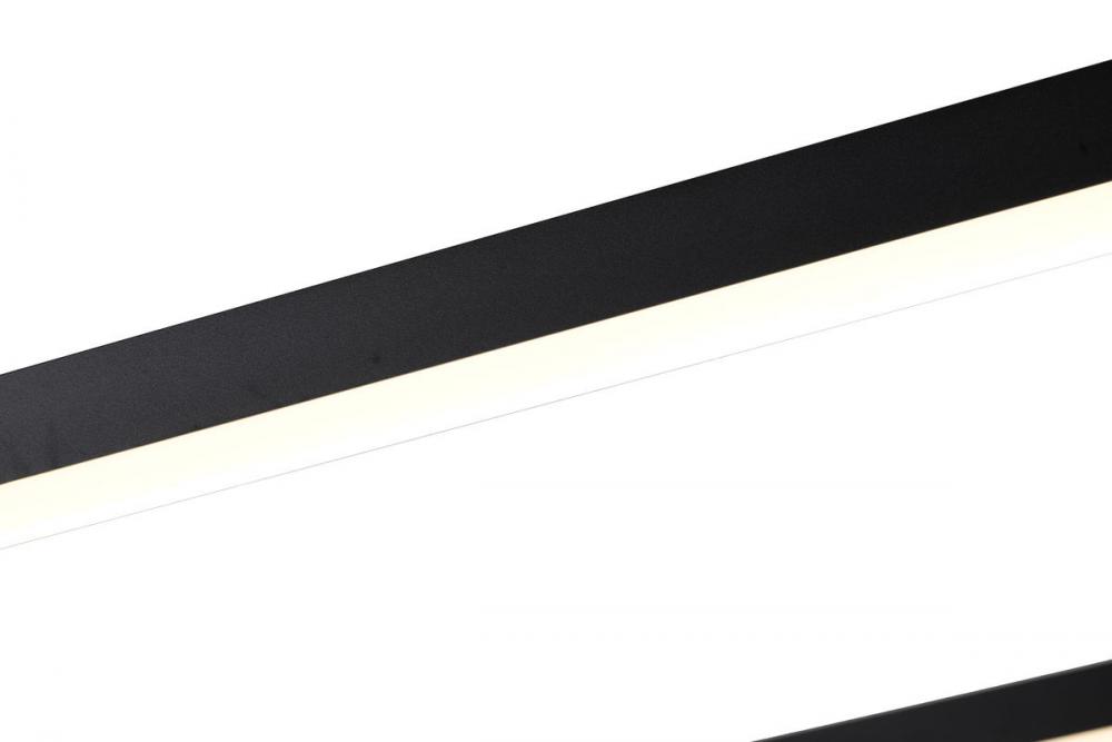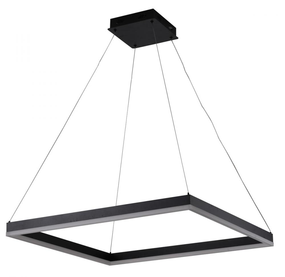 This LED chandelier has a matte black aluminum frame