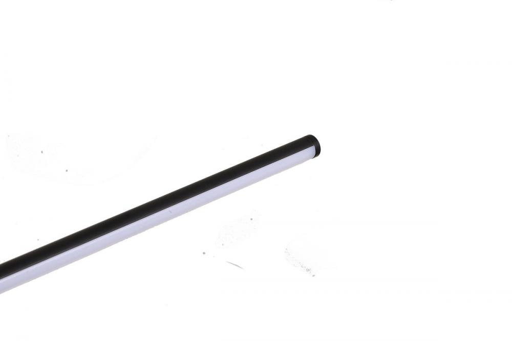 This unique LED chandelier is in a black finish. The frame is made out of metal, and the LED bulbs are integrated into the frame. It also comes with white acrylic diffusers.
