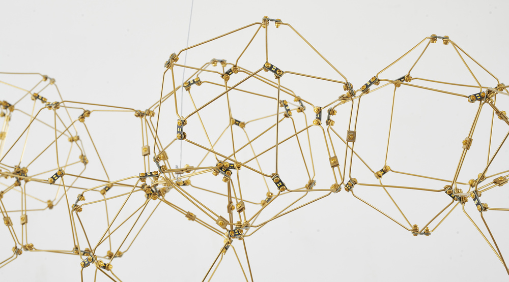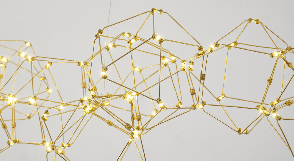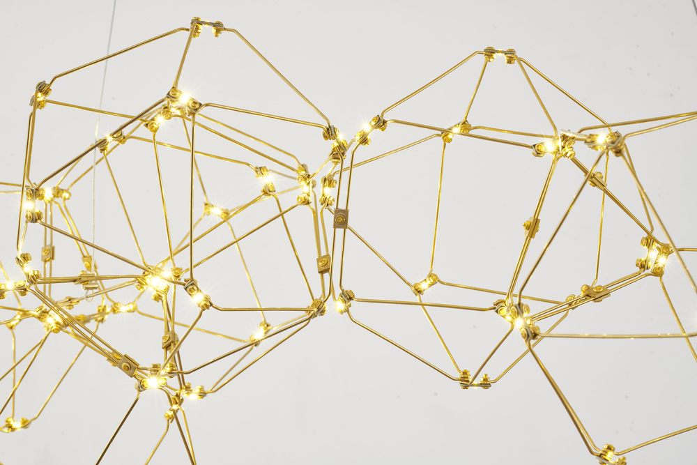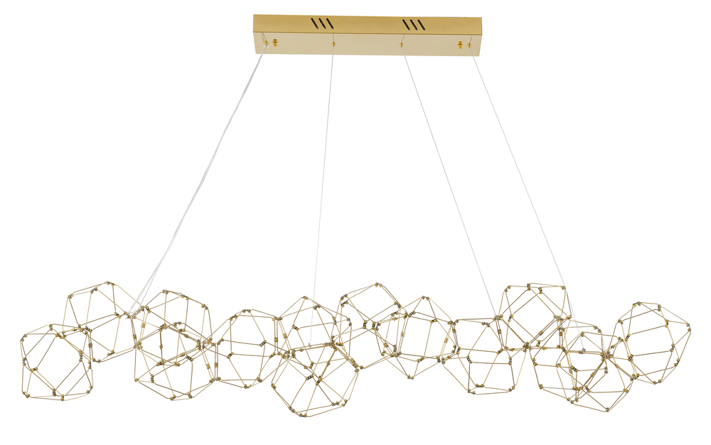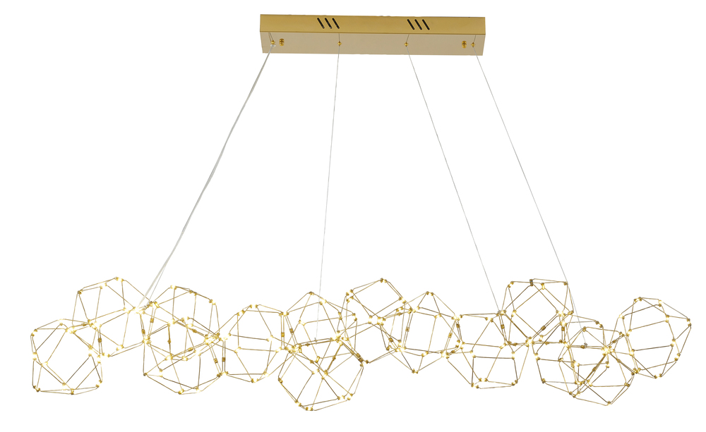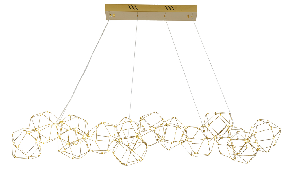 This LED chandelier has a gold stainless steel frame