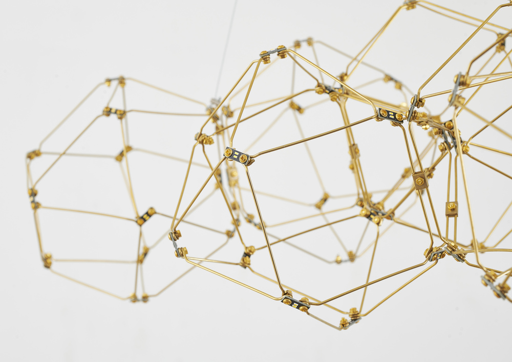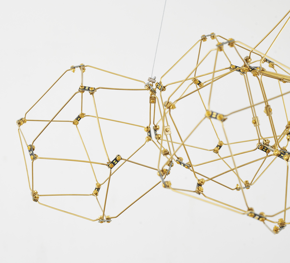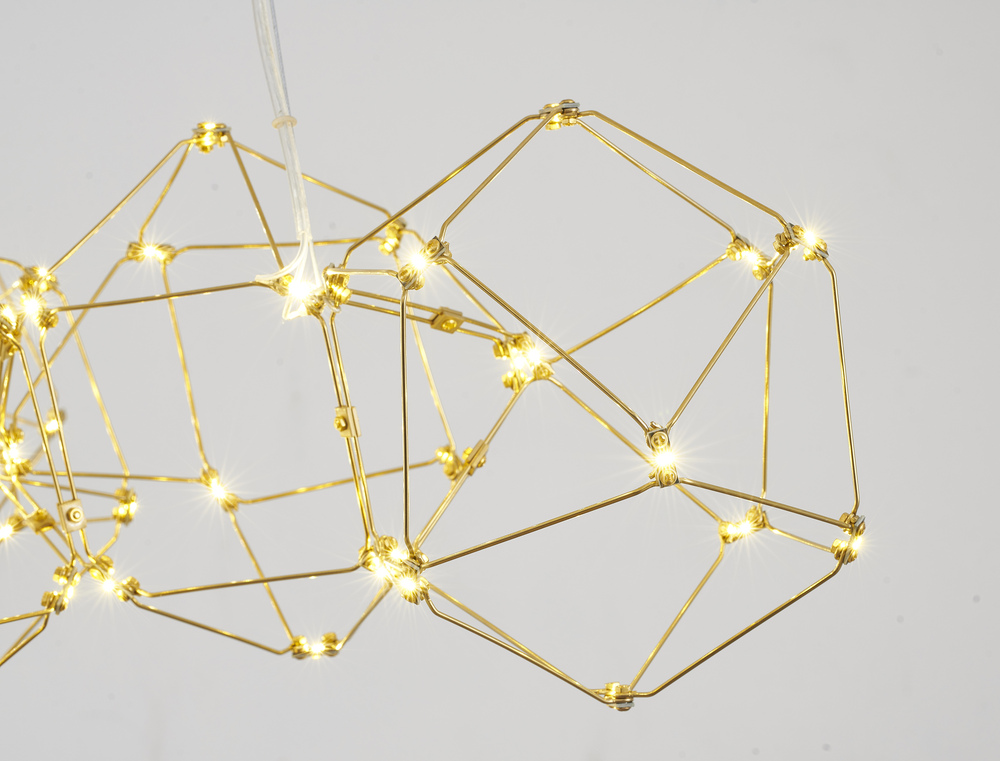 This LED chandelier has a gold stainless steel frame