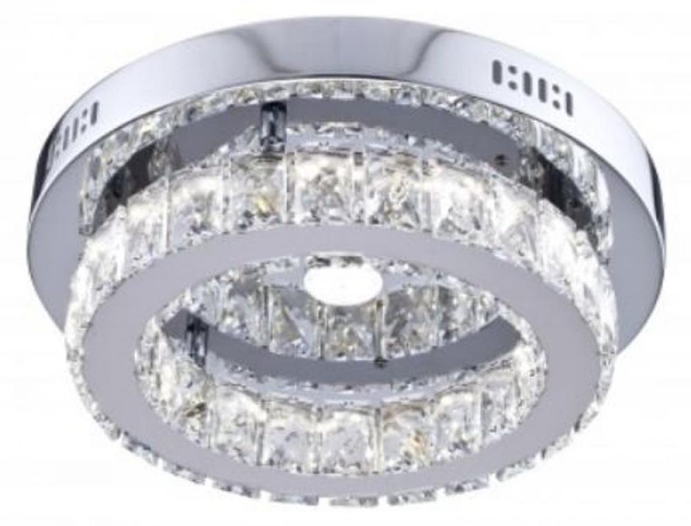 This exquisite LED flush mount is in a chrome finish. The frame is made out of metal, and the LED bulb is integrated into the frame. It comes with clear crystal accents in clear color. It also comes with remote control to turn ON/OFF